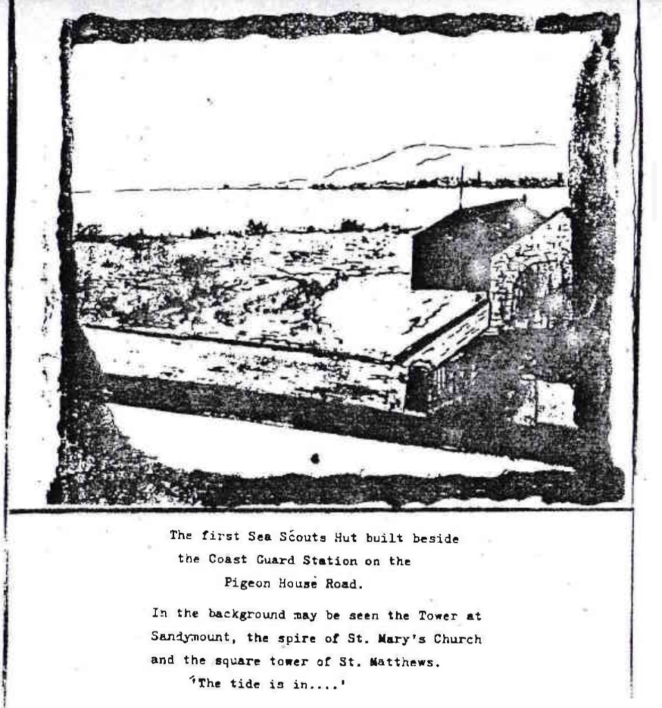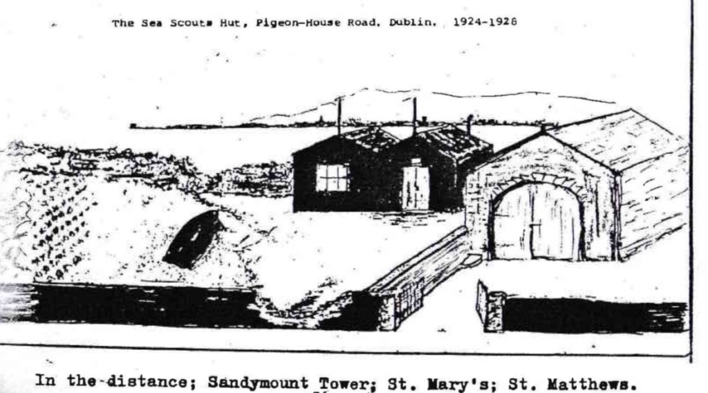 The group’s log book records that in the summer time, the Scouts of Fortune’s 1st Dublin troop camped on the sand dunes alongside the coastguard cottages on the Pigeon House Road from 1909 onwards. The group’s records discuss negotiations with Pembroke Council from 1912 for a site next to the Coastguard station. The minutes of Pembroke Council in 1914 record the following: